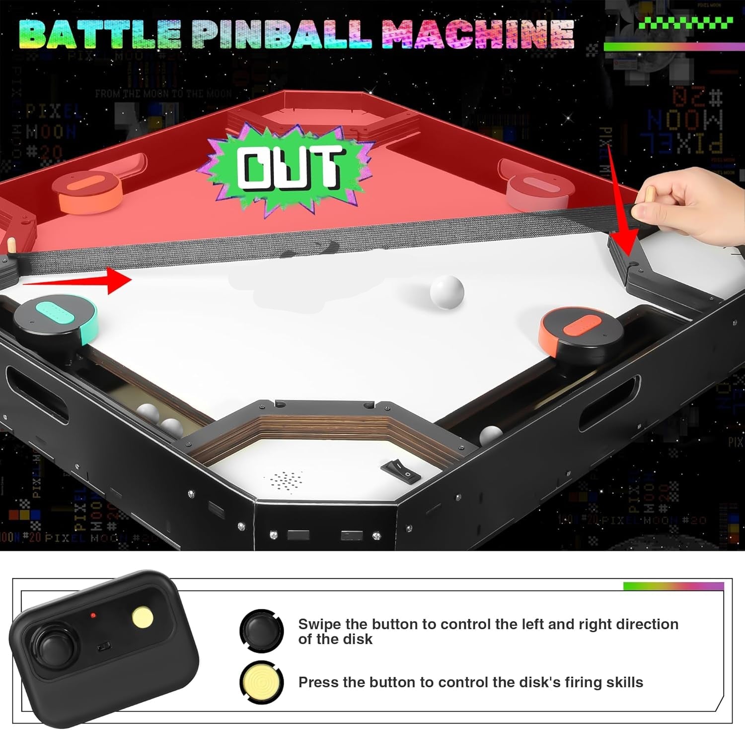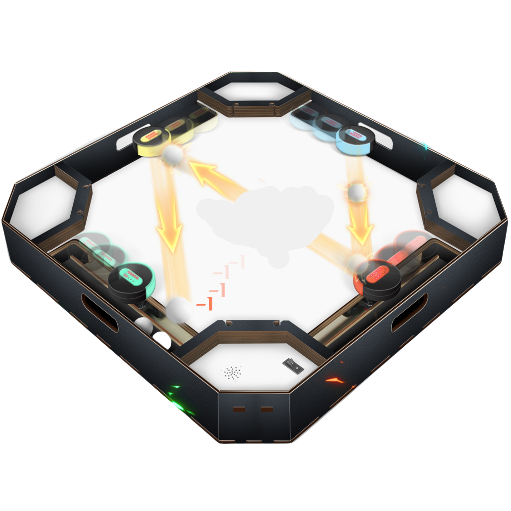 Use your controller to slide the ball across the table.Defend your zone while trying to send the ball into opponents’ scoring areas!